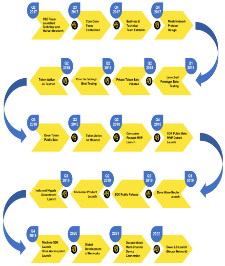 Dove Network berusaha untuk menghadirkan akses internet yang terjangkau ke dunia dengan memungkinkan rekan-rekannya untuk memperdagangkan kapasitas data yang tidak digunakan. Ini semua dimungkinkan dengan teknologi Blockchain dan jaringan mesh. Aplikasi berdesain blockchain Dove menggunakan jaringan peer-to-peer untuk memungkinkan orang dan perangkat yang mendukung Wi-Fi untuk secara lancar menukar data yang tidak terpakai dan tidak sah.