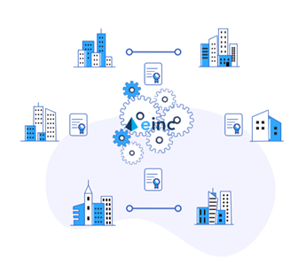 Organisasi Einc - cerdas kontrak dengan protokol yang telah ditetapkan (eInc protokol) dan bekerja pada blokcheyne EtherInc, Einc masing-masing memiliki nama yang unik dan akan didukung oleh eIncNS kontrak pintar (organisasi eInc nama layanan).