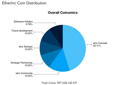 - Penciptaan organisasi. Koin ETI dapat digunakan untuk menyebarkan organisasi eInc ke sistem pemblokiran EtherInc, eIncNS untuk registri organisasi eInc.