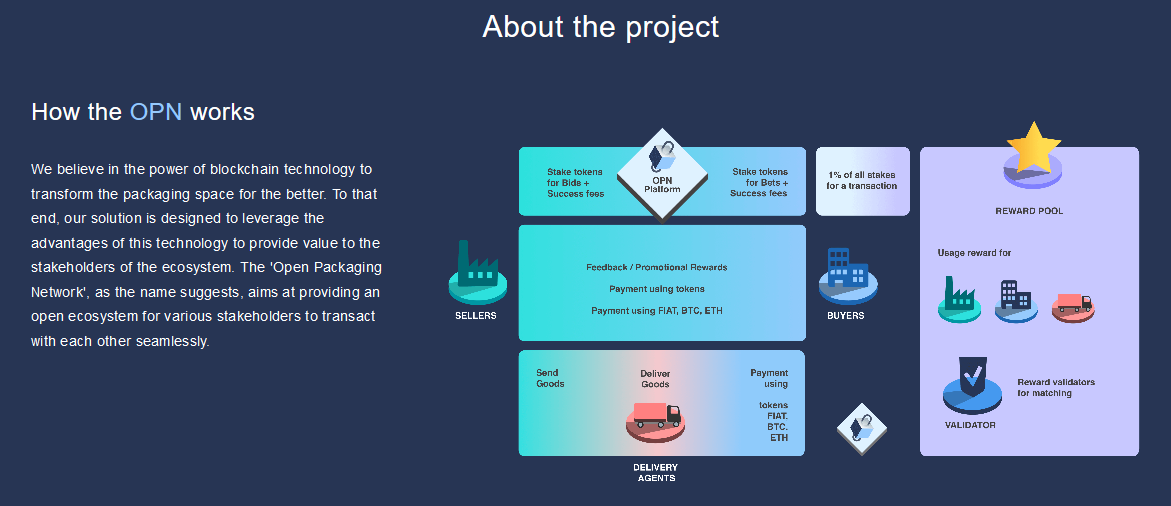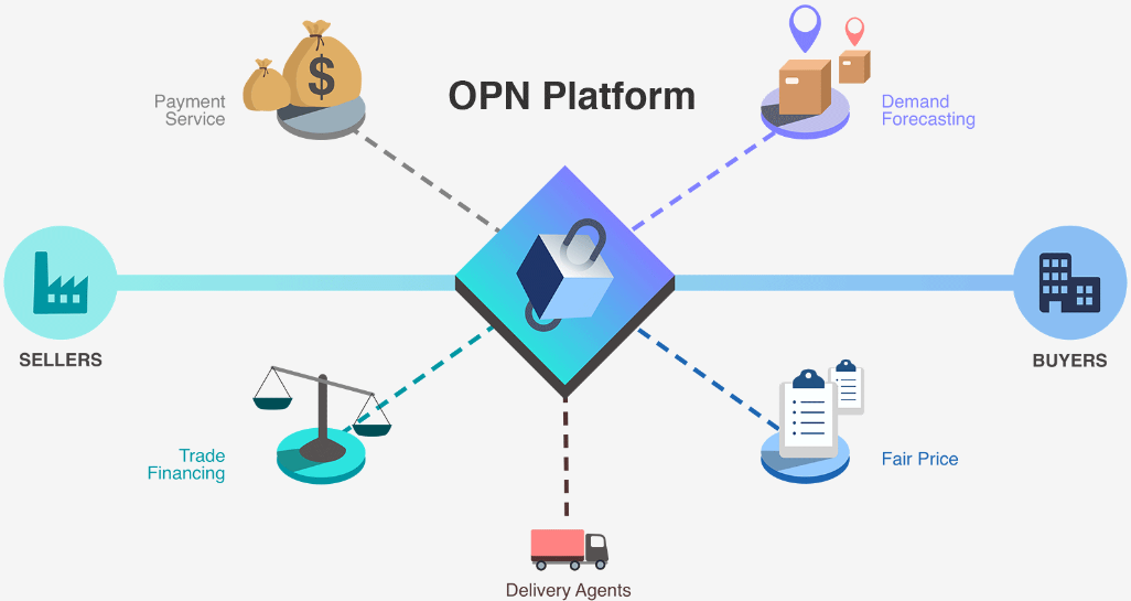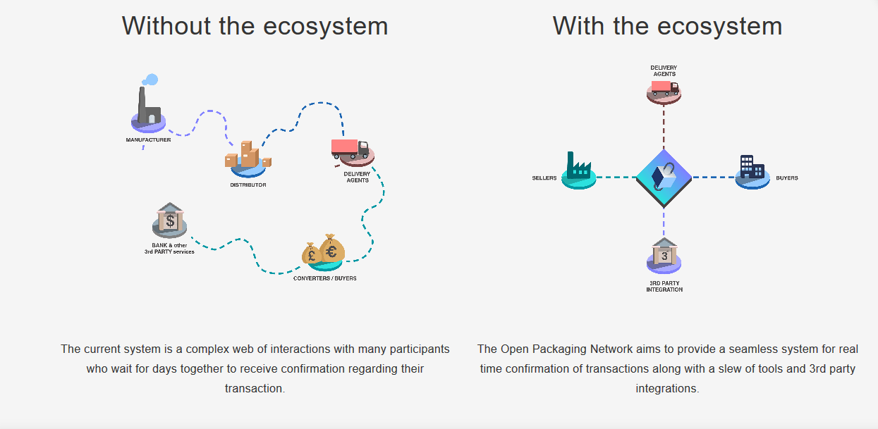 Masalah pembeli menemukan penjual yang tepat dan sebaliknya, barang tertentu, menjadi masalah yang lebih besar. Open Packaging Network telah memutuskan untuk makan siang di pasar sehingga produsen menemukan pembeli dan pembeli mereka dapat menemukan produsen, juga menciptakan platform bagi kedua belah pihak untuk berinteraksi. Platform Open Packaging Network adalah tempat di mana layanan diberikan sesuai perjanjian antara pembeli dan penjual. Platform ini akan menciptakan berbagai pilihan bagi pembeli untuk mengambil, karena mereka memiliki akses ke berbagai macam dan berbagai produk dengan harga lebih baik. Platform ini didasarkan pada teknologi tercepat dan paling transparan di dunia, teknologi Blockchain. Dengan ini,