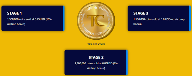 1.500.000 Trabet Coin будет продаваться в Pre-ICO 0,5 доллара США с бонусом Airdrop 40%!